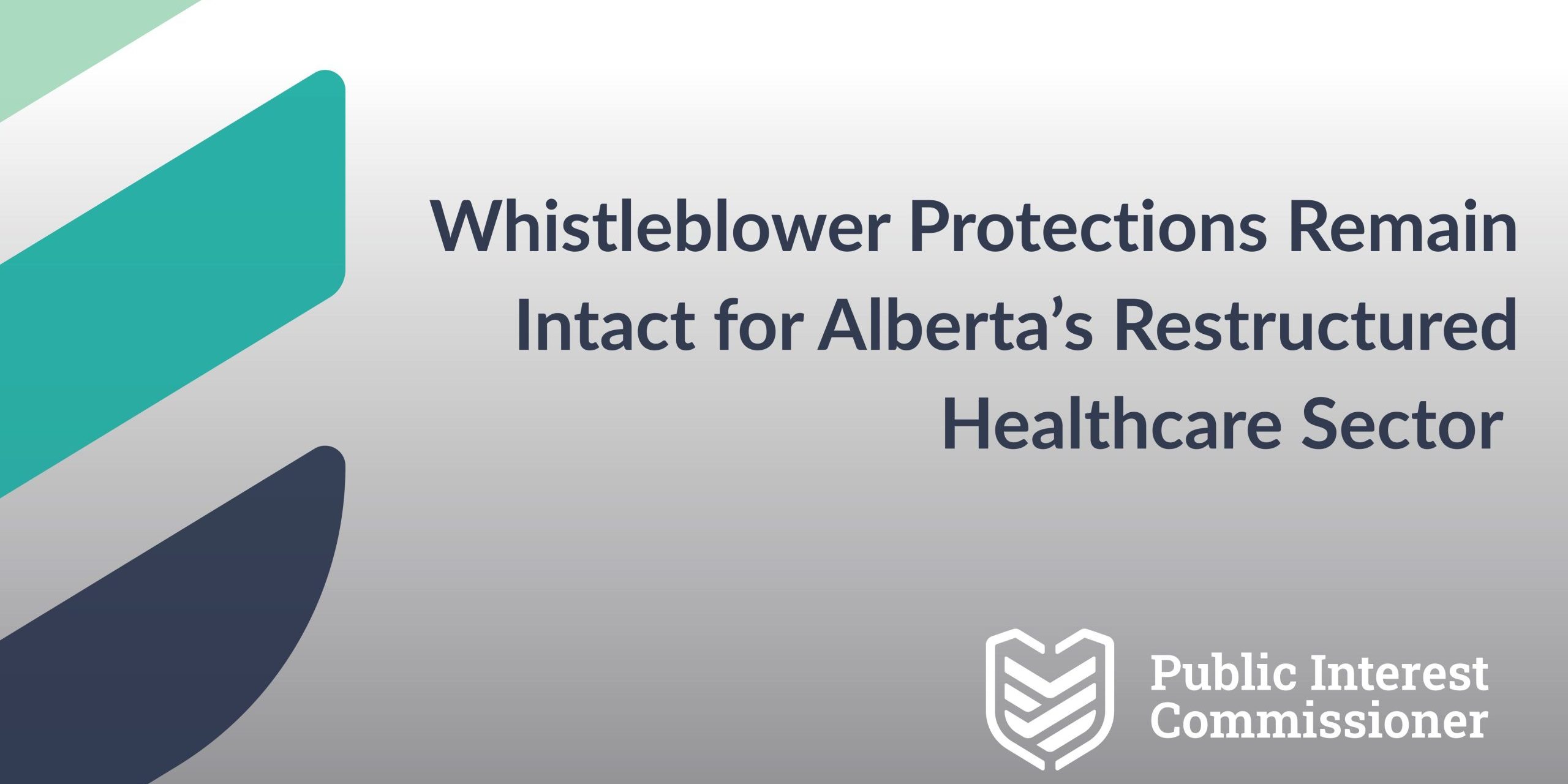 Due to the ongoing implementation of changes to Alberta’s healthcare sector, the Public Interest Commissioner today clarified the impact of these changes on the Public Interest Disclosure (Whistleblower Protection) Act (The Act), assuring healthcare employees that they have a safe avenue for reporting workplace wrongdoing or reprisal.